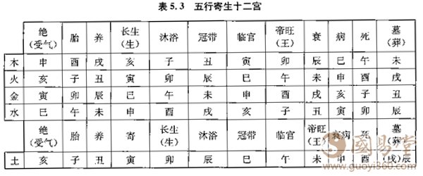 正是在五行寄生十二宫的基础上,产生了后来出现的十天干周行十二地支的生死旺衰历程。可以列表如下: