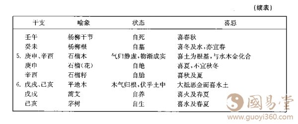 此外,五行的取象,也包含了阴阳的对峙。比如,金类六组中,甲子、乙丑对甲午、乙未,海中、沙中,有水土之辨,阴阳之分;壬寅、癸卯对壬申癸酉,金箔、创锋,金木之辨,刚柔之别;庚辰、辛已对庚戍、辛亥,白蜡.钗钏,乾巽异方,形色各尽。其实,其他的木类、水类、火类和土类的各组千支,都能作出上述同样的分析,这里就不一一叙述了。